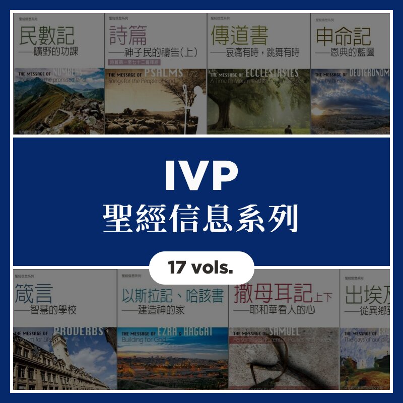 「IVP聖經信息系列(The Bible Speaks Today)」,由J.A. Motyer和已故John R. W. Stott編輯的《聖經信息系列》,註釋的特點是Stott所說的 「三重理想......準確闡釋聖經文本,將其與當代生活聯繫起來,並具有可讀性」。從英文的系列名稱就可以看出來,這套書是要闡述聖經每一卷書對當代教會、信徒的意義。有別於註釋書系列,聖經信息系列的重點不是解經註釋,而是闡述書卷對於當代的信息,也就是歸納法裡所說的 「應用」部分。本系列重點放在經文的重點歸納,以及這些重點對於時代的意義。每一卷書都由當代英美福音派名家所作,能幫助讀者精確掌握書卷信息重點;在應用上也都很適切,信息重點清楚,讀者很容易舉一反三、反求諸己。
