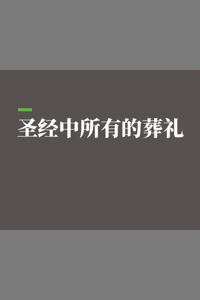 此数据集提供了旧约、次经和新约中各个葬礼的注释。葬礼的形式因文化而异,也受当地地形影响。 死者的遗体可以被埋葬在洞穴、墓穴或坟墓中,但很多时候文中并没有明确说明埋葬的方式。 此数据集也包含了这些很有帮助的资讯:埋葬的地点、墓地的主人、墓地的标记,与死亡和埋葬有关的仪式礼仪。本书是Logos 独家资源《圣经中的事物》全集中的一册。