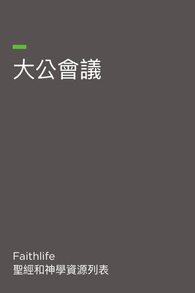 大公會議資源提供關於教會大公會議的介紹性資訊。 每個會議的資訊,是由教會歷史資源、字典、百科全書和維基百科中整理出來的。 這些數據不是為了提出對議會的意見,而是突顯與大公會議有關的著名人物、地點、主題、會議結果和其它重要的資訊。